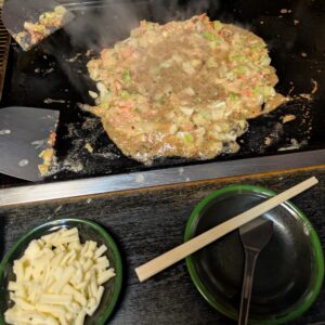 ホテルに一度荷物を置き夕食を食べに行きました!1日目の夕食はもんじゃ焼きでした♡